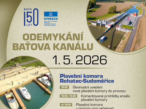 Tradiční odemykání Baťova kanálu letos v pátek 1. května nabídne výjimečný zážitek – slavnostní zahájení plavební sezóny bude spojeno se zprovozněním nové plavební komory Rohatec – Sudoměřice, která napojí Hodonín na Baťův kanál. Návštěvníci se tak mohou těšit nejen na bohatý doprovodný program, ale i na jedinečnou možnost proplout tímto novým technickým dílem.